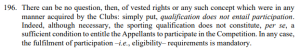 El TAS confirmó la legitimidad de dicha facultad discrecional, subrayando que la norma otorga a la FIFA un margen reglamentario limitado, pero necesario, para resolver situaciones excepcionales derivadas de conflictos de elegibilidad entre clubes bajo una misma estructura de propiedad, y concluyendo que no existía indicio alguno de desviación, dado que la elección se basó en criterios objetivos y preestablecidos, tales como el mérito deportivo reciente, la posición en el ranking de la confederación y la continuidad institucional.