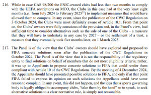 Asimismo, concluyó que a diferencia del CAS 98/200, los equipos podían haber previsto la situación conflictiva desencadenante de la exclusión de Club León de la competición y, en consecuencia, haber adoptado las medidas oportunas con anterioridad, así como que no es responsabilidad de la FIFA encontrar soluciones para los miembros que no cumplen con el criterio de elegibilidad.